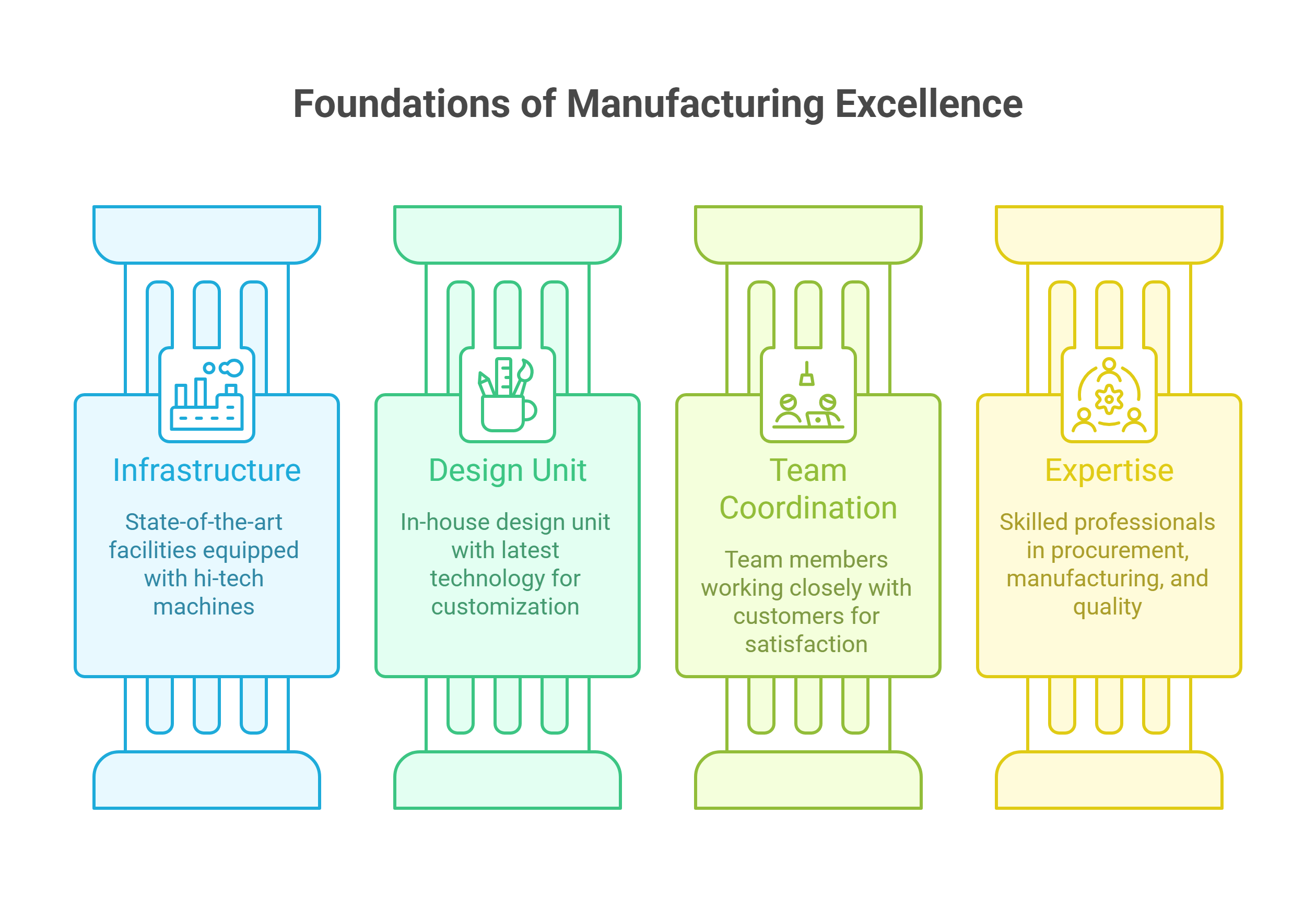 Skilled team including procurement agents, engineers, quality analysts, and packaging experts