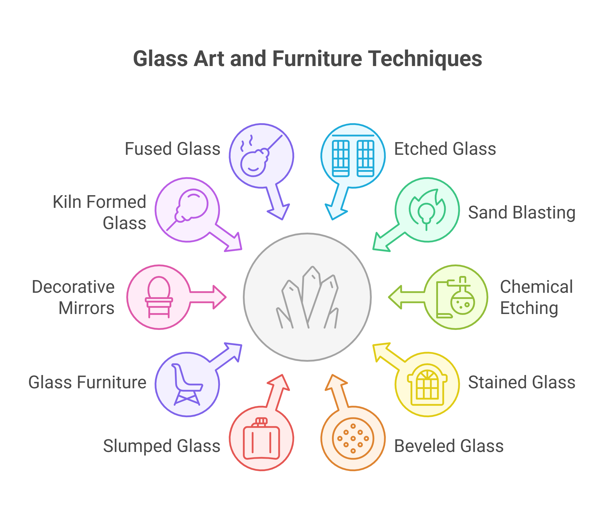 Decorative specialty glass adds elegance with stained, beveled, V-grooved, obscure, or custom sandblasted designs.